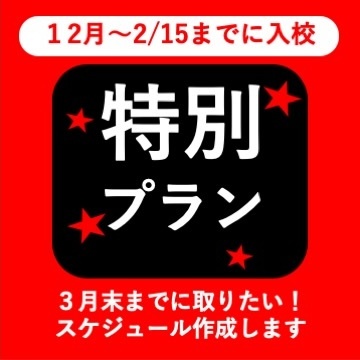 【先着15名様】12月〜2月15日に入校の方のスケジュールプラン「特別プラン」