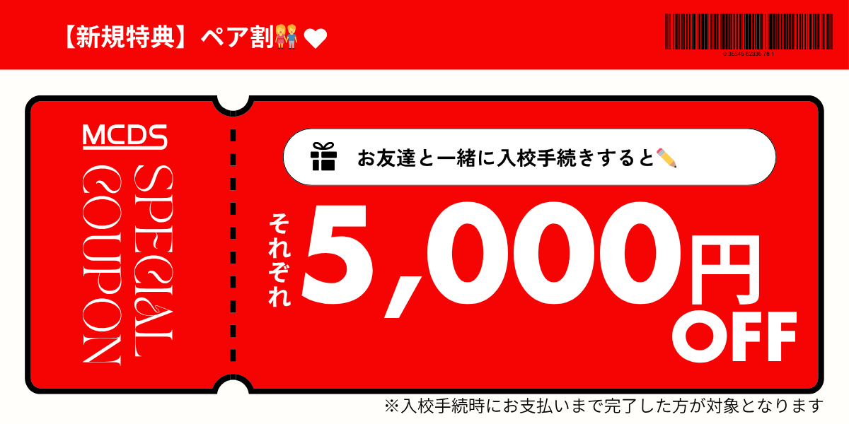 お友達やご家族で一緒に入校手続き※すると、お二人ともに5,000円OFF!