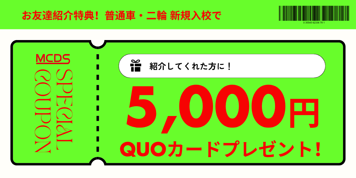 お友達やご家族の方をご紹介いただくと紹介者様に、QUOカード5,000円分をプレゼント!