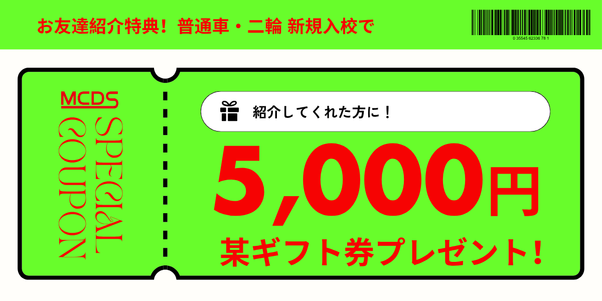 ・新規入校の方に限ります。(仮免保有、限定解除、ペーパードライバー講習の方は除く)