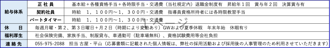 ※ サービス業ですのでお客さまに親切・丁寧に接することができ、事故・違反の少ない方を優遇します。